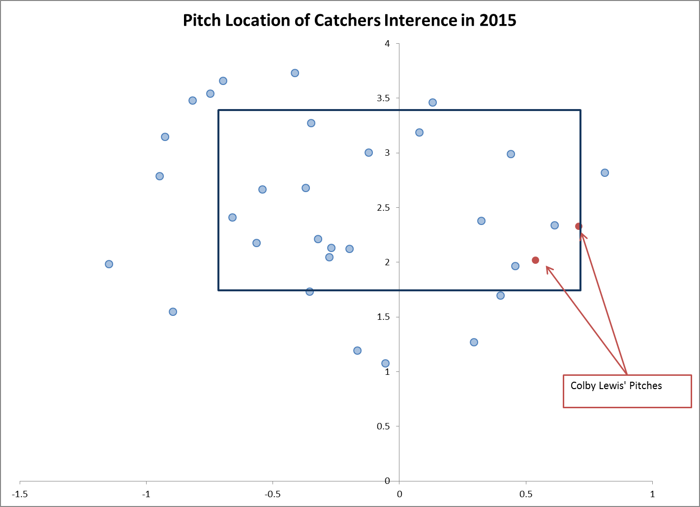 Baseball is weird. It is full of oddities and plays that you’ve never seen before, but baseball nerds find inner peace in “sample size” that because of the length of the season results in normalizing of the all that is right and holy. Baseball itself finds peace knowing that today’s scorched lineout becomes tomorrow’s auspicious RBI flare double that lands on the chalk. So in this treasure trove of new data that is being collected by MLB Advanced Media, we’re supposed to filter through those Colby Lewis Catcher Interferences and find larger trends that help to educate the game. Supposed to. How can I possibly look away from those two red dots?