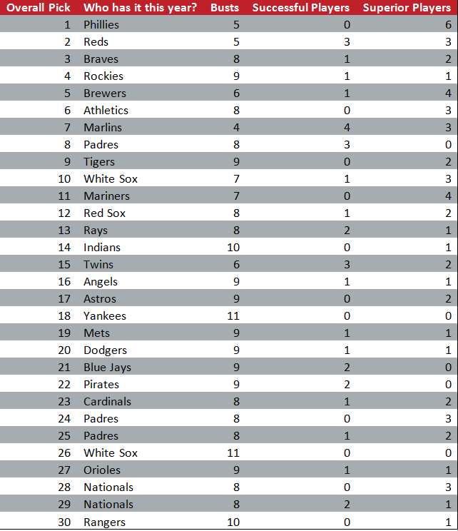 A last little bit of fun. For the draft last week, I wanted to point out which organizations were selecting in a spot that may not yield quite the results that they want. Yankees and White Sox fans, shield your eyes.