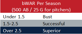 That’s pretty low. Our definition of a successful player was pretty narrow, to be sure, but it seems like 1.5 -2.5 WAR guys should be pretty prevalent. Guess not. Let’s see how front offices do on picking up superior players.