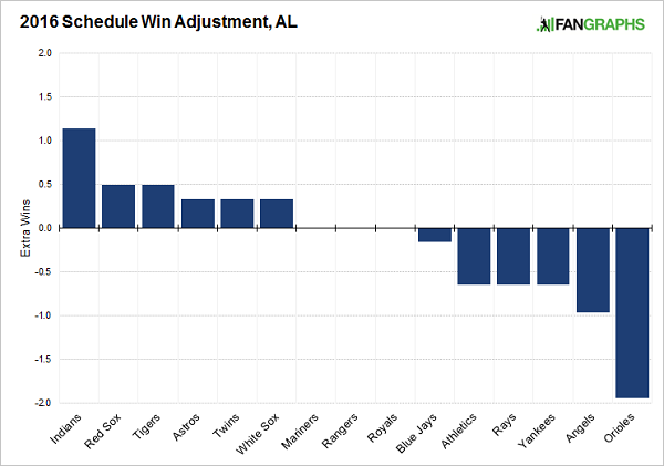 It would also appear that the Red Sox do enjoy an advantage in the strength of their remaining schedule, with Fangraphs giving the 0.5 extra wins over the course of the year on the easy path ahead. The Orioles interestingly are pegged to lose 2 more games than they normally would because of the tough schedule. 2 games will almost certainly be the difference between a playoff berth and a premature offseason in this divisoin.