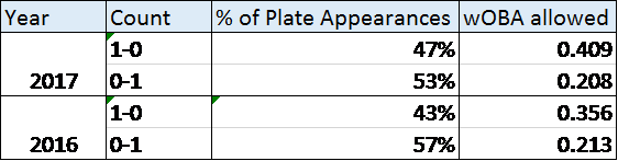 That last number there is the expected value of the contact that he has given up on the pitch. 2017 has been worse in terms of expected value, but that is not where opposing teams have been doing their damage. These expected stats are great, but we have to be careful how deep into the analytics we go; it’s just baseball and we all know the hair probably was to blame.