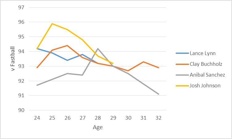 I prefer my chess to be played in the normal amount (Two? Three?) of dimensions. But that said, I like your point about finding a comp for Lynn. That second group, the bad group, all have one thing in common: a rapid loss of velocity as they aged. Here’s a chart for you.
